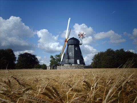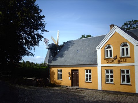 Grubbe Mølles vindmølle er af hollandsk type. Det vil sige, at det kun er hatten der drejes op mod vinden. Vindmøllen stod oprindeligt ved Nykøbing på Sjælland, hvor den nævnes første gang i 1832. I 1892 blev møllen købt af den daværende ejer af Grubbe Mølle A. P. Ploug og flyttet til Fyn.